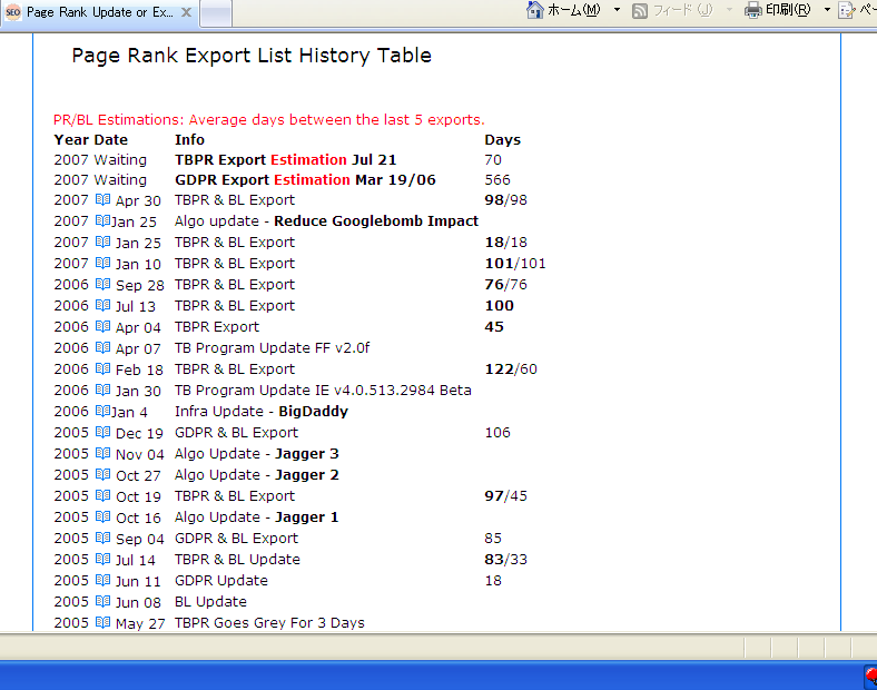 国外のサイトではあるのだが、googleの動向を細かく分析→次回ページランクツールバー表示上の更新